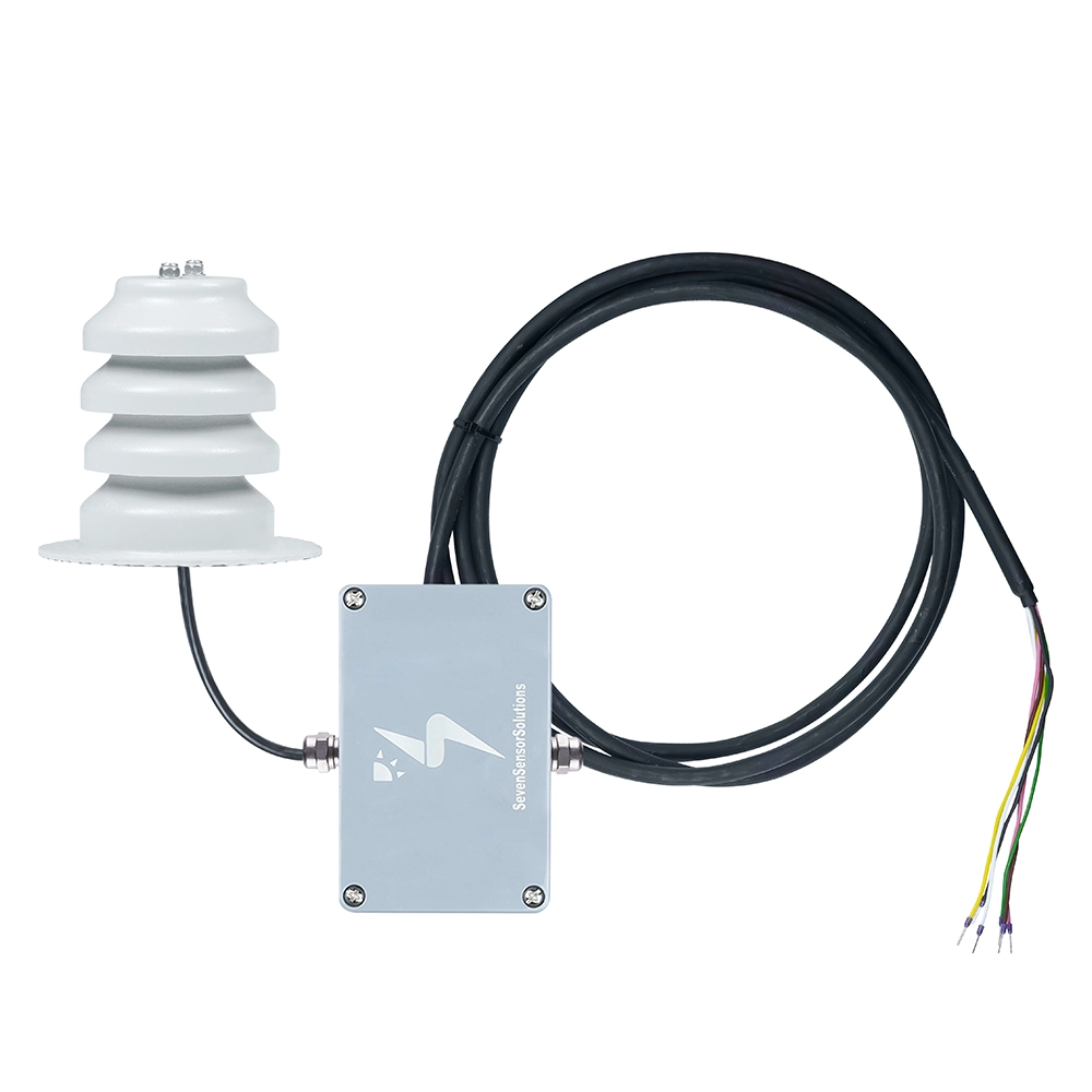 El Sensor de Temperatura Ambiente mide la temperatura del aire en el área donde se instalan los paneles fotovoltaicos (PV), expresada en grados Celsius (°C), mediante una sonda PT1000. Para generar una señal de salida de 0-10 V, se utiliza un transductor que convierte la señal de la sonda PT1000 al formato requerido. Este sensor es compatible con cualquier registrador de datos o PLC equipado con un puerto de entrada RS485. Se entrega con un soporte de montaje y cuenta con un escudo de plástico con cuatro placas ventiladas, que lo protegen de la luz solar directa y las radiaciones, permitiendo un flujo de aire libre y constante.