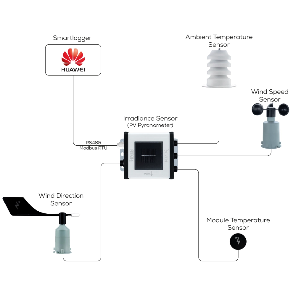 SEVEN provides a full set of weather station for Solar Power Plants compatible with all models of Huawei Smartloggers. It includes different sensors required to monitor the Solar PV Plant using the Huawei monitoring systems; Enspire, and Neteco or FusionSolar. SEVEN Sensor is working as solution partner for Huawei distributors. In fact, the compatibility of our sensors with Huawei Smartloggers have been approved by the Huawei headquarter.
