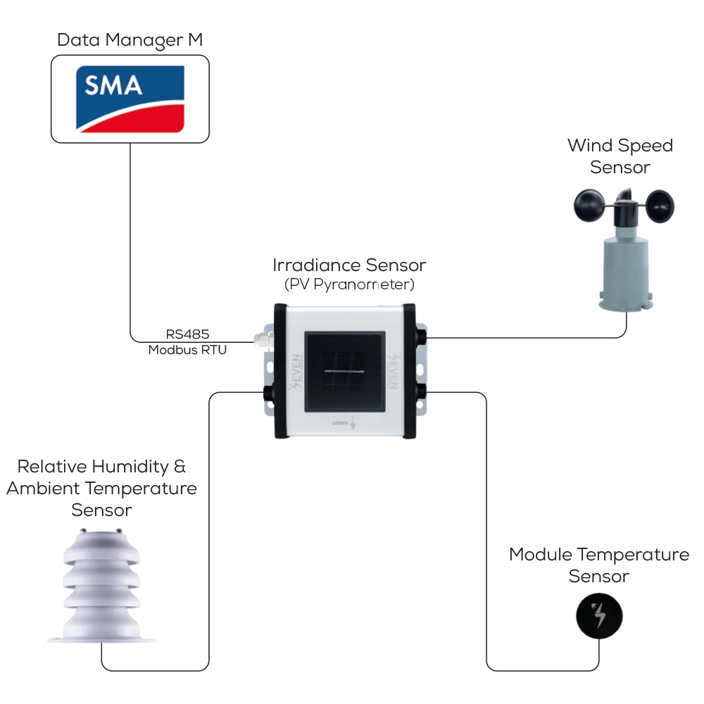 Since we, SEVEN Sensor Solutions, work as a solution partner of SMA’s distributors, we provide a full weather station containing sensors that are completely compatible with SMA’s Data Manager M.