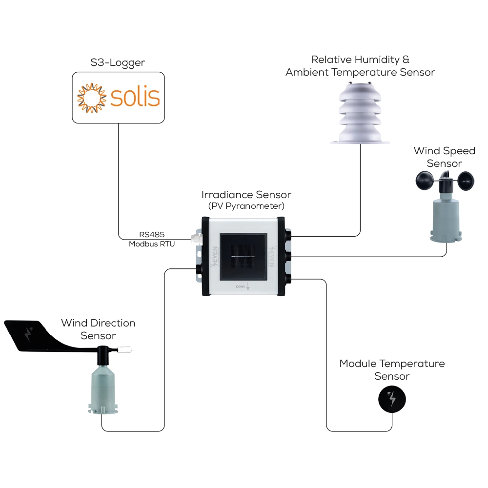 SEVEN provides a full set of Weather Station for Solar PV Plants, compatible with Solis Data Logging Box.