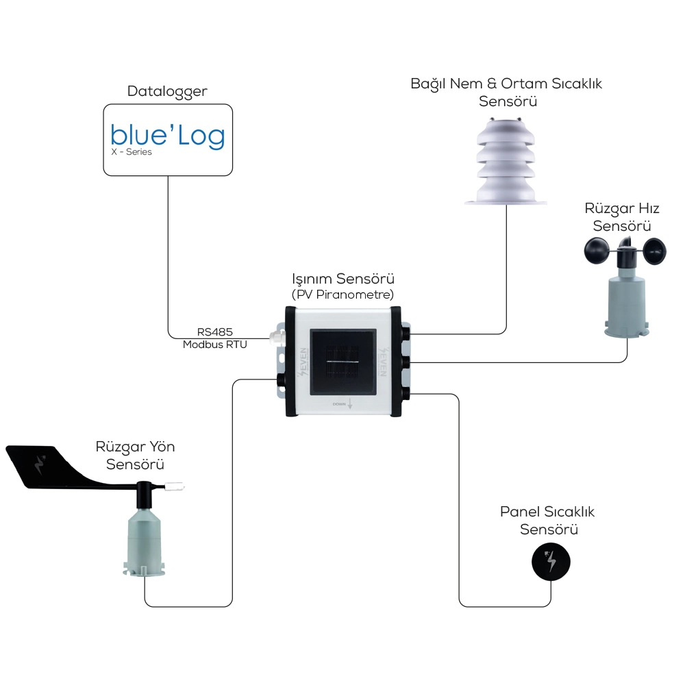 SEVEN, Bluelog serisi veri kaydediciler ile uyumlu hava gözlem istasyonu sensörlerinin üretimini sağlamaktadır. Sensörler BlueLog veri kaydediceleri ile SunSpec ile iletişim kurarak verileri VCOM İzleme Portalına aktarmaktadır.