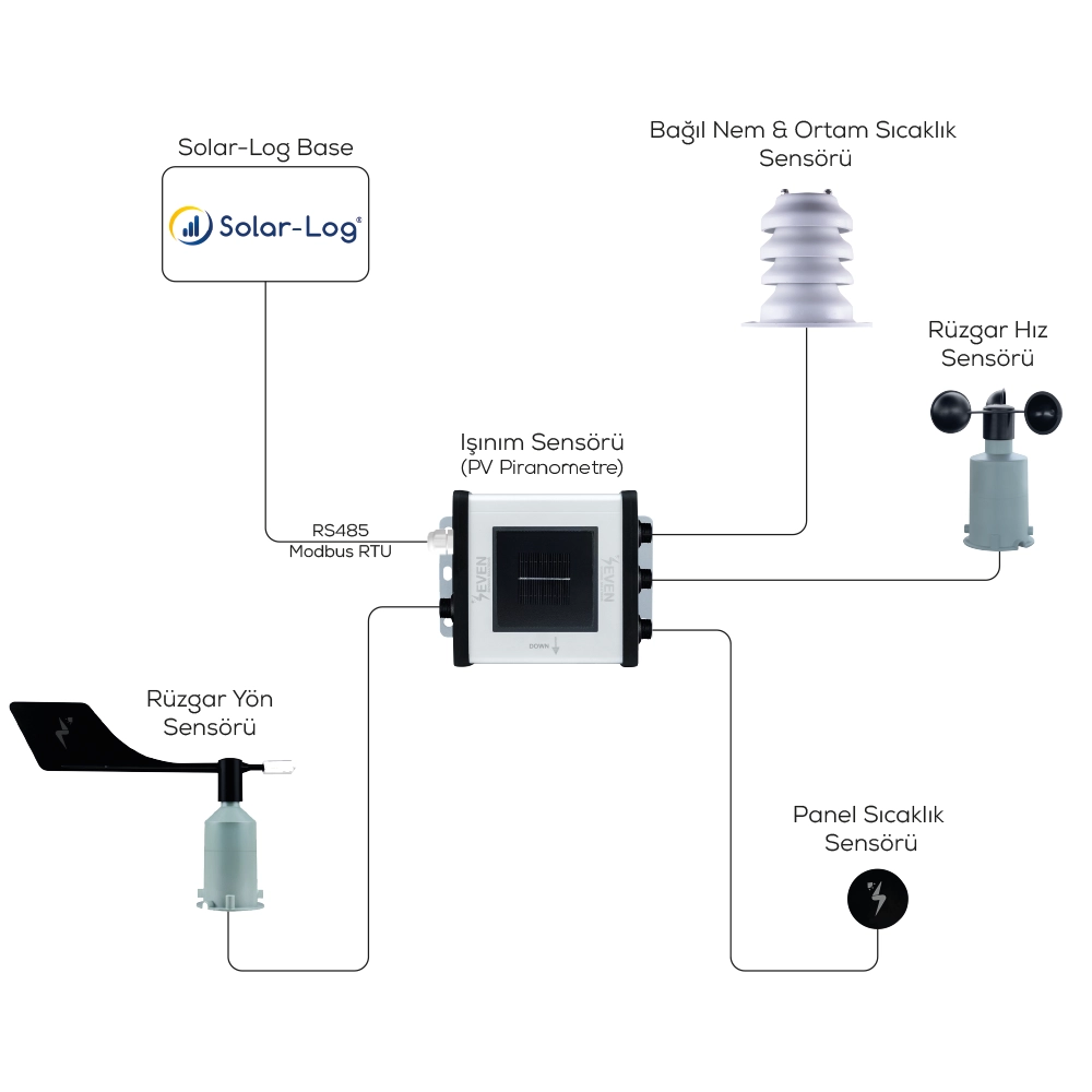 SEVEN hava istasyonu, güneş enerji santralleri için geliştirilmiş olup Solar-Log™ veri kayıt cihazları ve izleme sistemleriyle tam uyumludur. İçeriğinde; ışınım, panel sıcaklık, bağıl nem, ortam sıcaklık, rüzgar hız ve rüzgar yön gibi PV tesislerin performans takibinde ihtiyaç duyulan tüm temel sensörler yer alır. Gerçek zamanlı ve doğru çevre verileri sayesinde SEVEN hava istasyonu güneş santralinizin performansını artırmanıza yardımcı olur. Tüm bu veriler Solar-Log WEB Enerest™ platformu üzerinden kolayca izlenebilir.