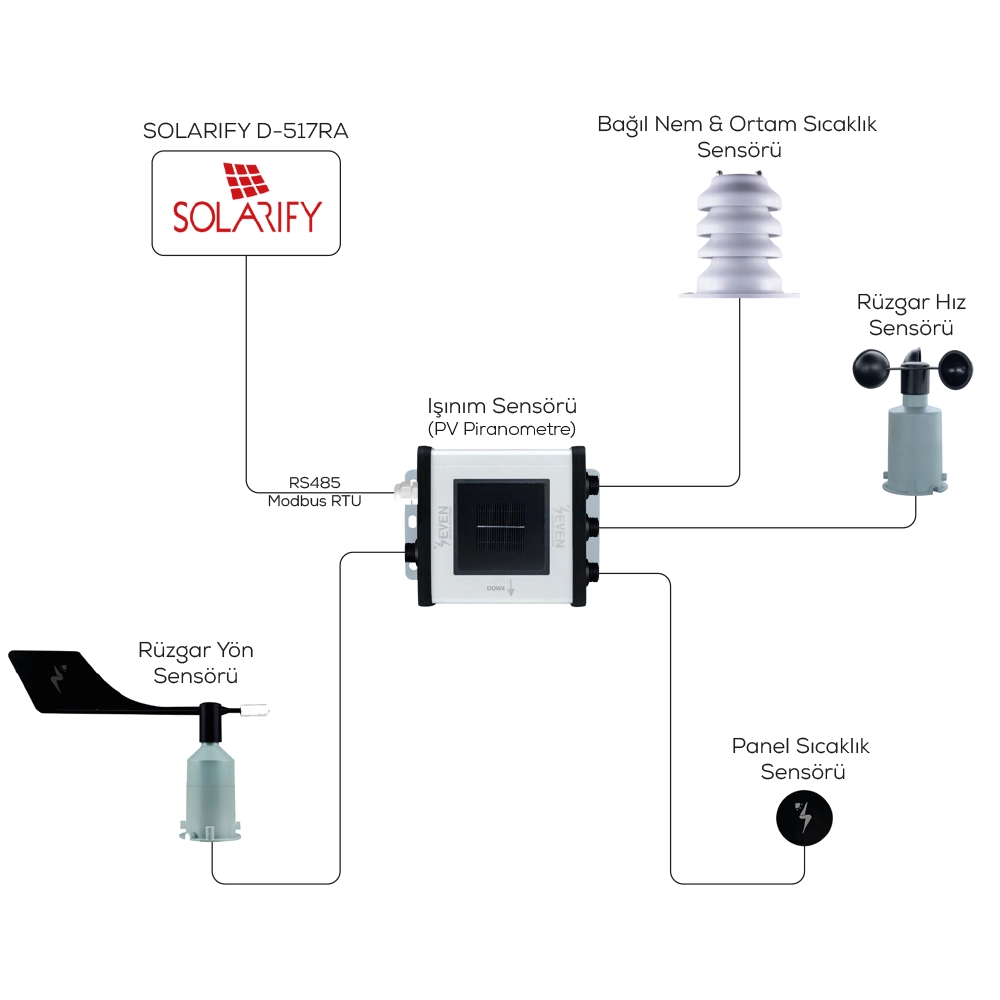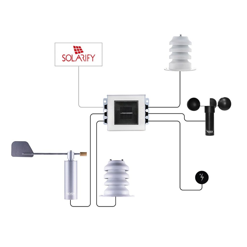 SEVEN Sensör Solarify veri kaydedicileri ile uyumlu hava gözlem istasyonları üretmektedir. Hava gözlem istasyonunda yer alan sensörler Solarify veri kaydediciler ile entegre edilmektedir ve PV Santrallerin performans takibinin yapılmasını sağlamaktadır.